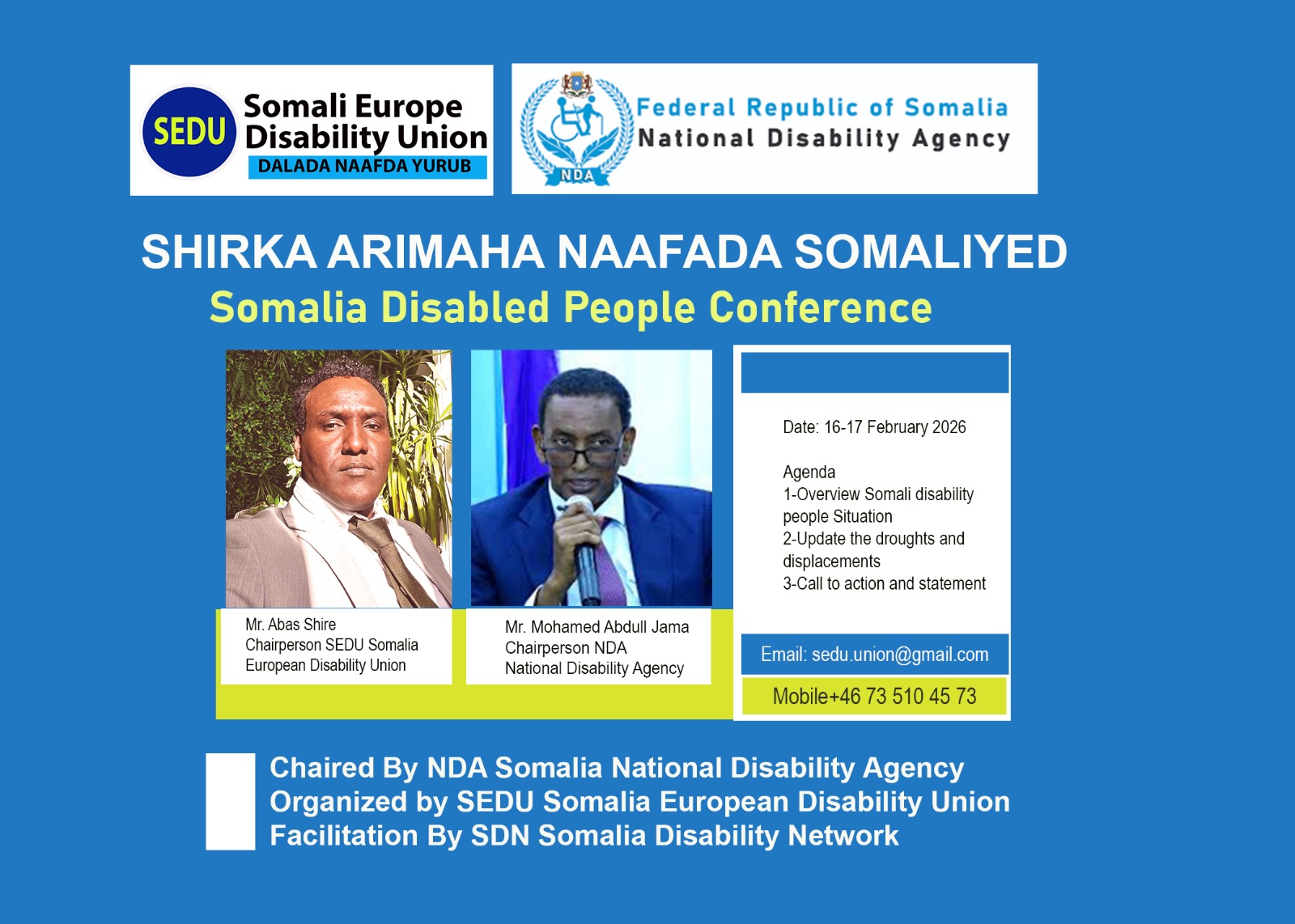 Chairperson NDA National disabilty agency), and international partners to discuss the humanitarian situation of persons with disabilities (PWDs) in Somalia amid the ongoing drought and displacement crisis.